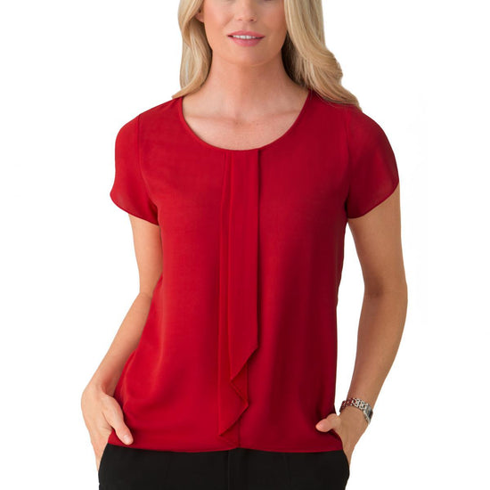 This Cascade Knit top is beautifully soft and features a cascading pleat on the front neckline for a point of difference. With a soft round neckline this lightweight top adds class and comfort to any uniform.