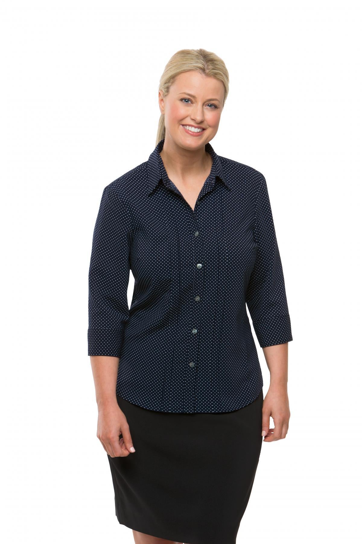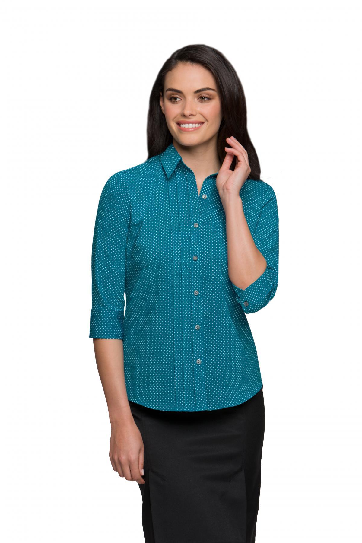 City Stretch Spot Blouse 3/4 Sleeve - Teal