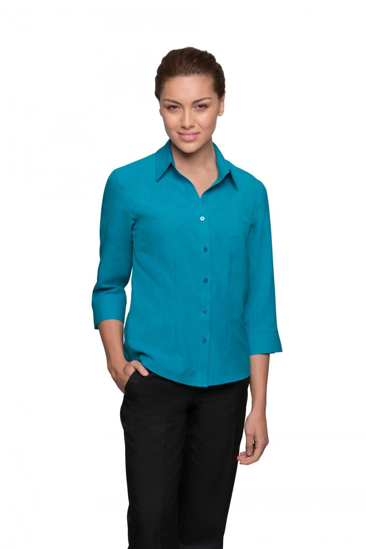 The Ezylin blouse is designed for hard work in a special finish that repels moisture from the skin, keeping you dry. This lightweight, breathable blouse features flattering bust darts as well as front and back vertical darts and is made with wrinkle free Polyester fabric. This will keep your staff looking fresh all day long.