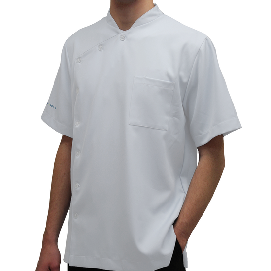 A new spin on the male tunic and a must have for the hard-working professional. Featuring an Asymmetrical front button fastening and breast pocket with pen slot.