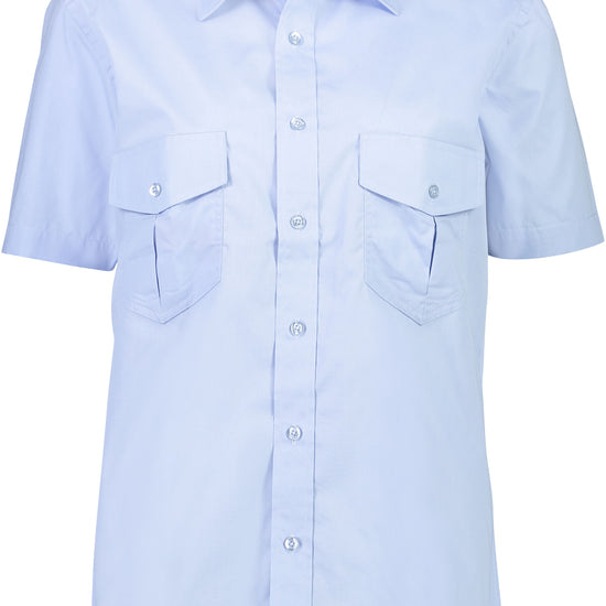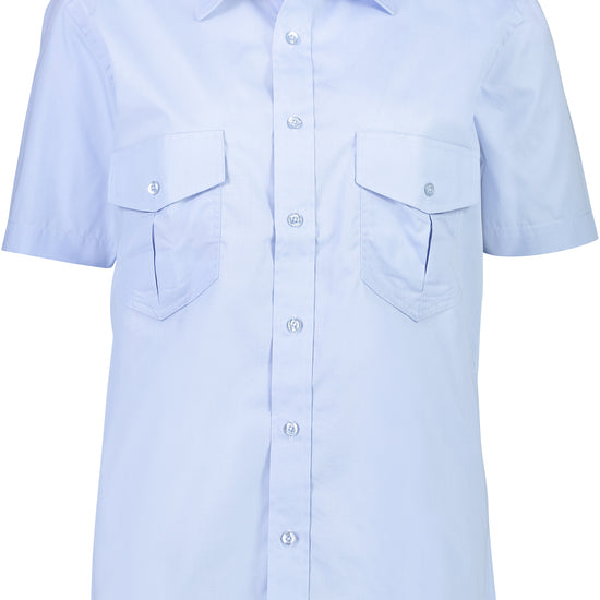 Our Short Sleeve Epaulette Shirt is a button to neck regular fit design with back shoulder pleats for ease of movement and epaulettes. Also features two pleated chest pockets with protective flaps and button fastening for security.