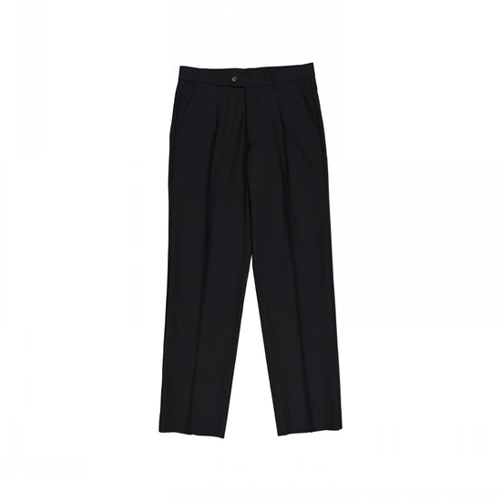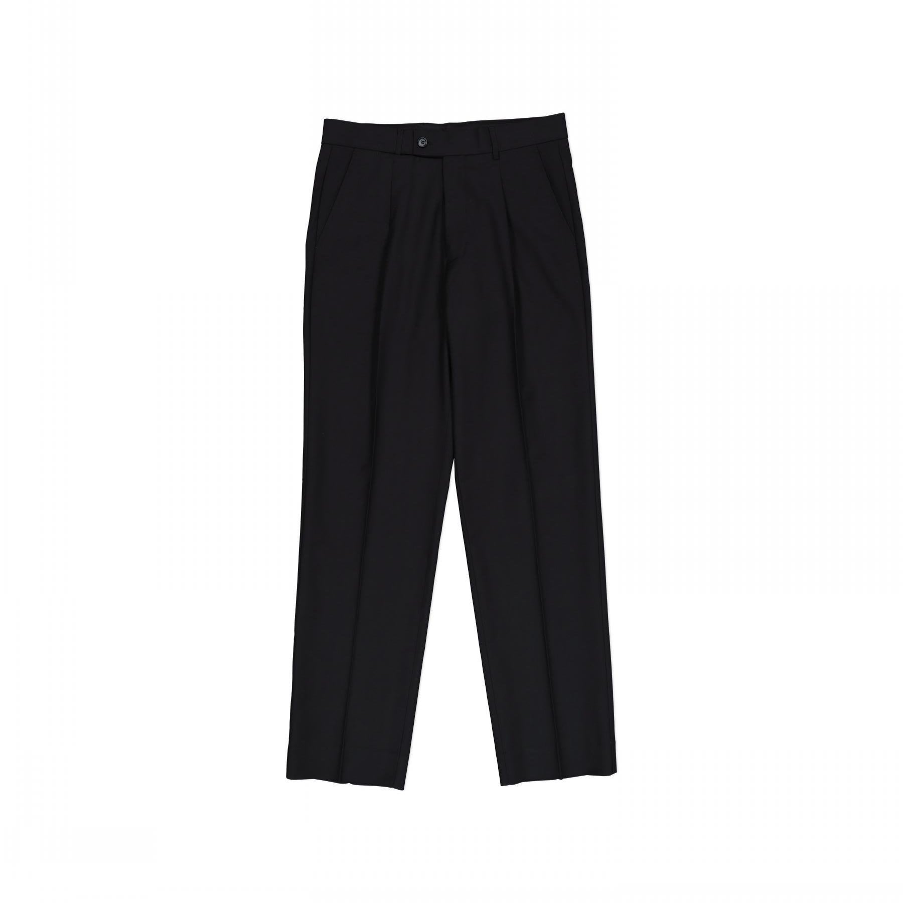 These pleat front trousers are the ideal everyday wear. Features include a beltloop waistband, slanted front pockets and small coin pocket with a hidden key loop. Back darts and the classic double welt pocket.