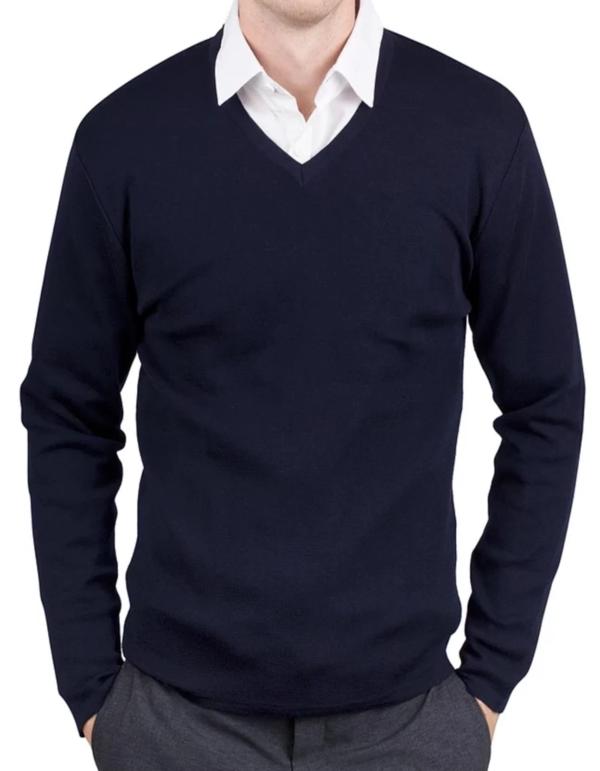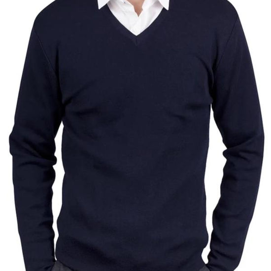 Mens Navy Merino V Neck Pullover