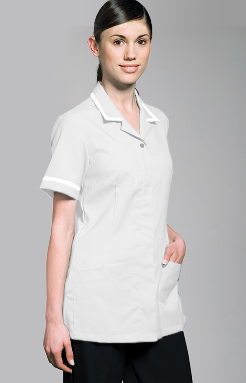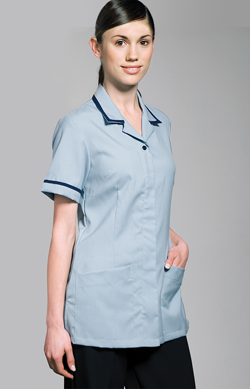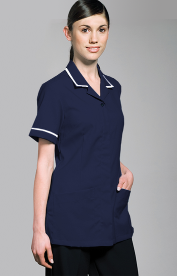 The Penny revere collar tunic top features a concealed zip front for a more seamless look, side splits to aid ease of movement and two handy front pockets. This top is durable, lightweight, comfortable and easy care working with you in your active environment.