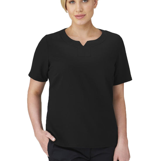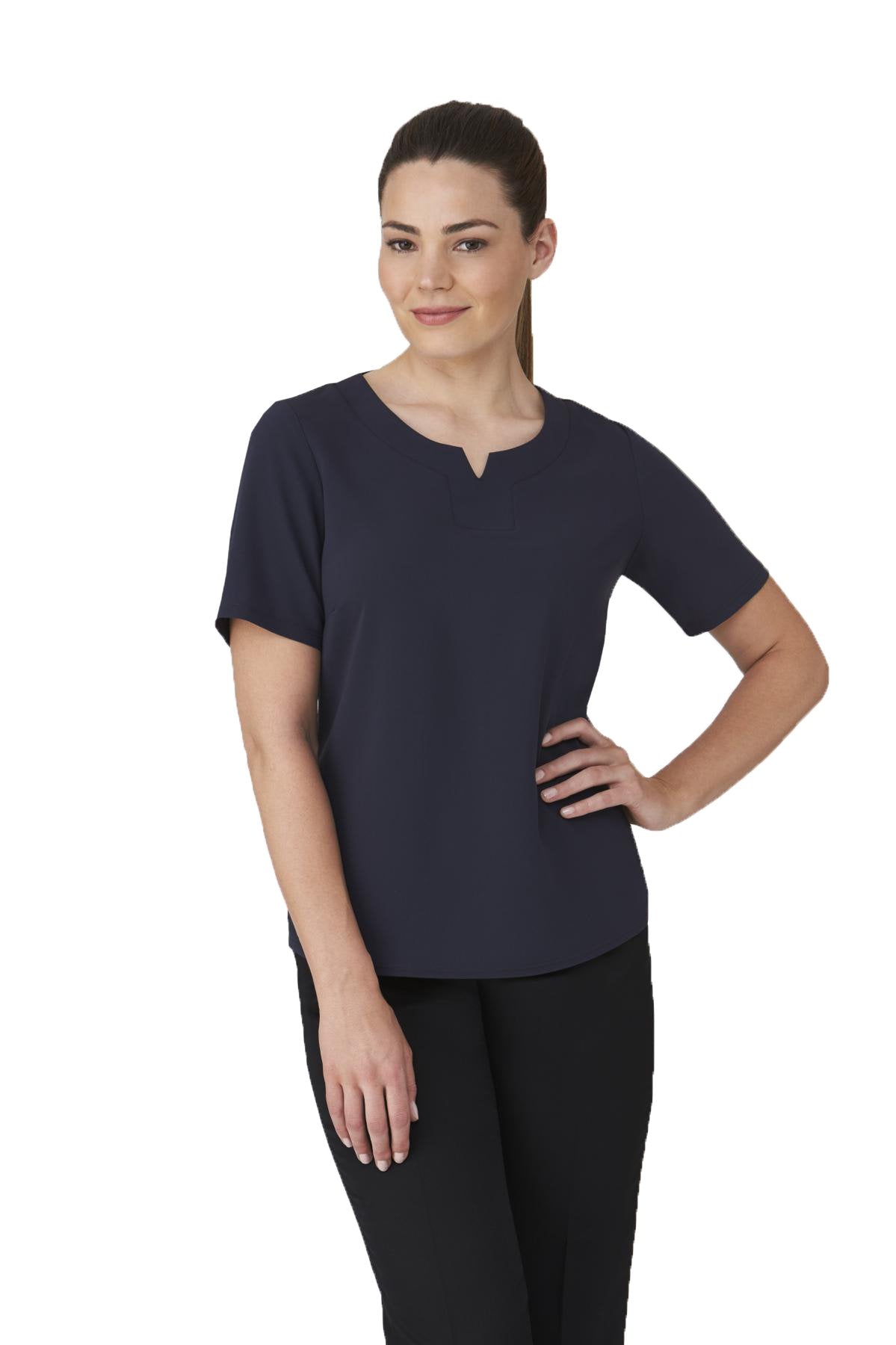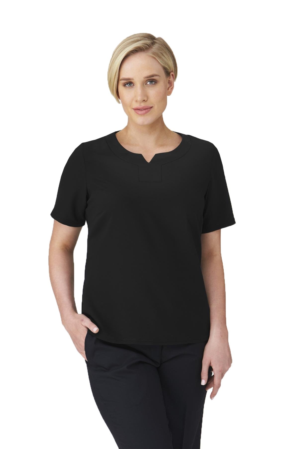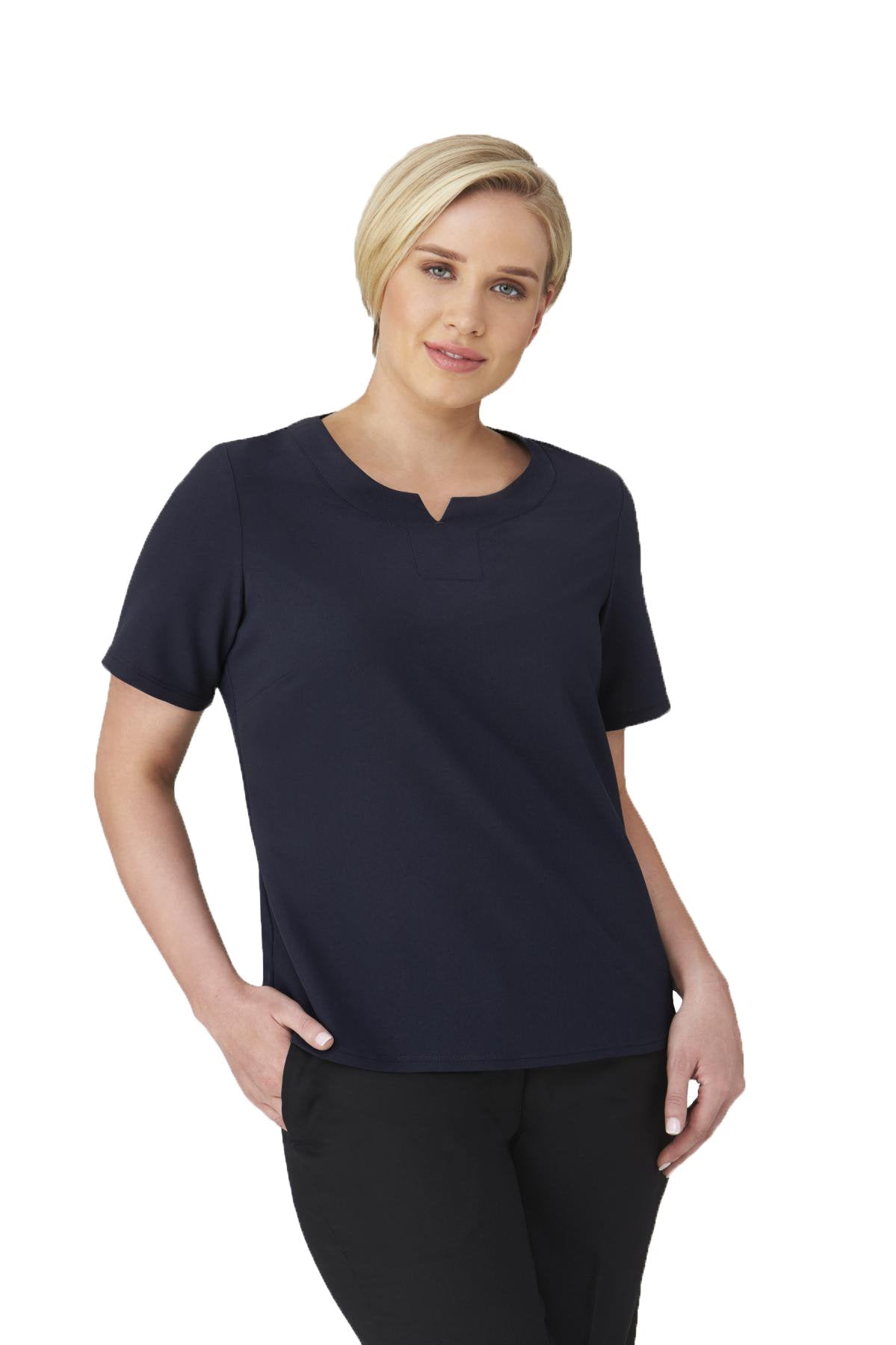 The Knit Woven is an everyday classic with a simple notch neck and flattering fit. Made in an easy care stretch this comfortable short sleeve top will make the life of any business woman easier.