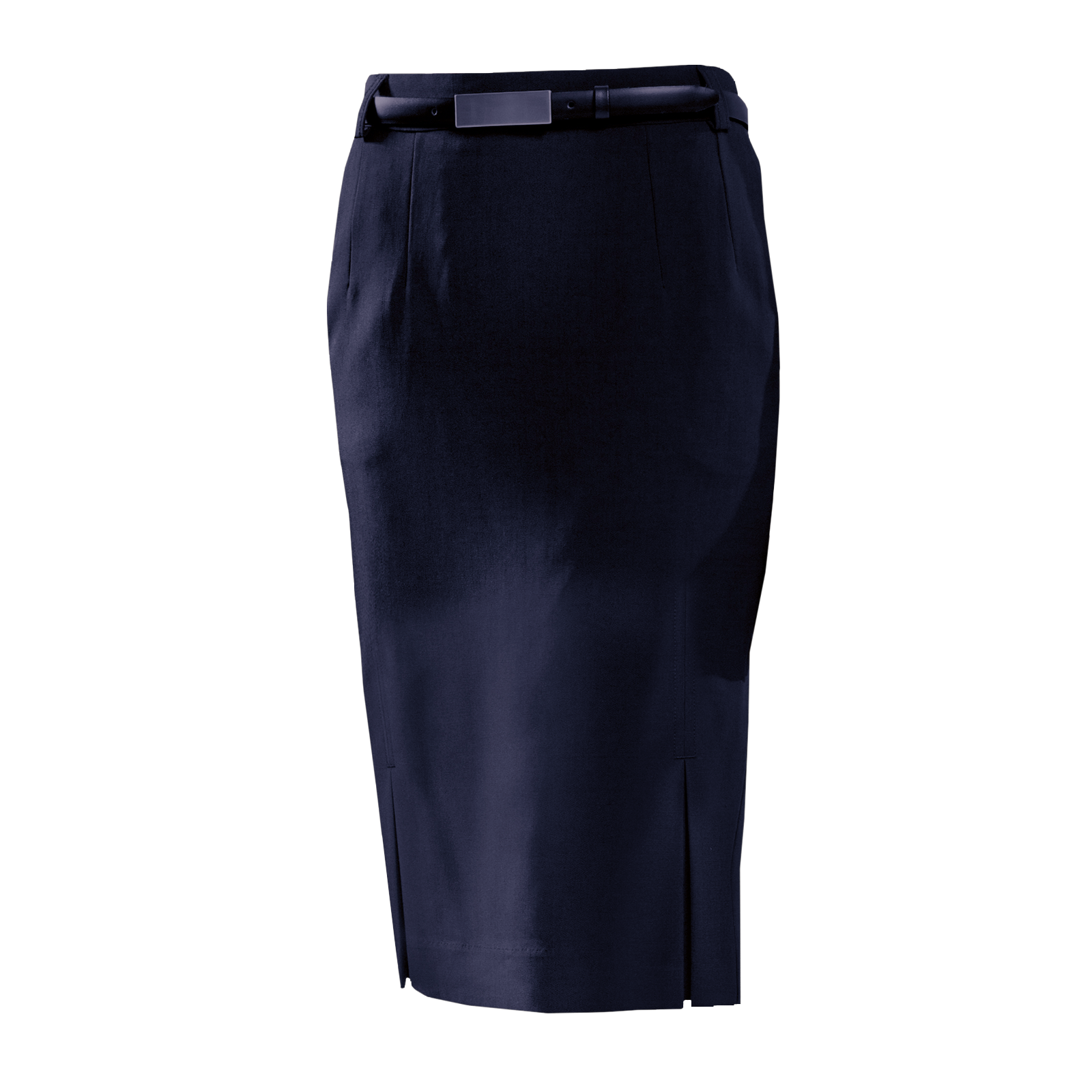 Our Women's Kick Pleat Skirt is a mid-length pencil fit style,