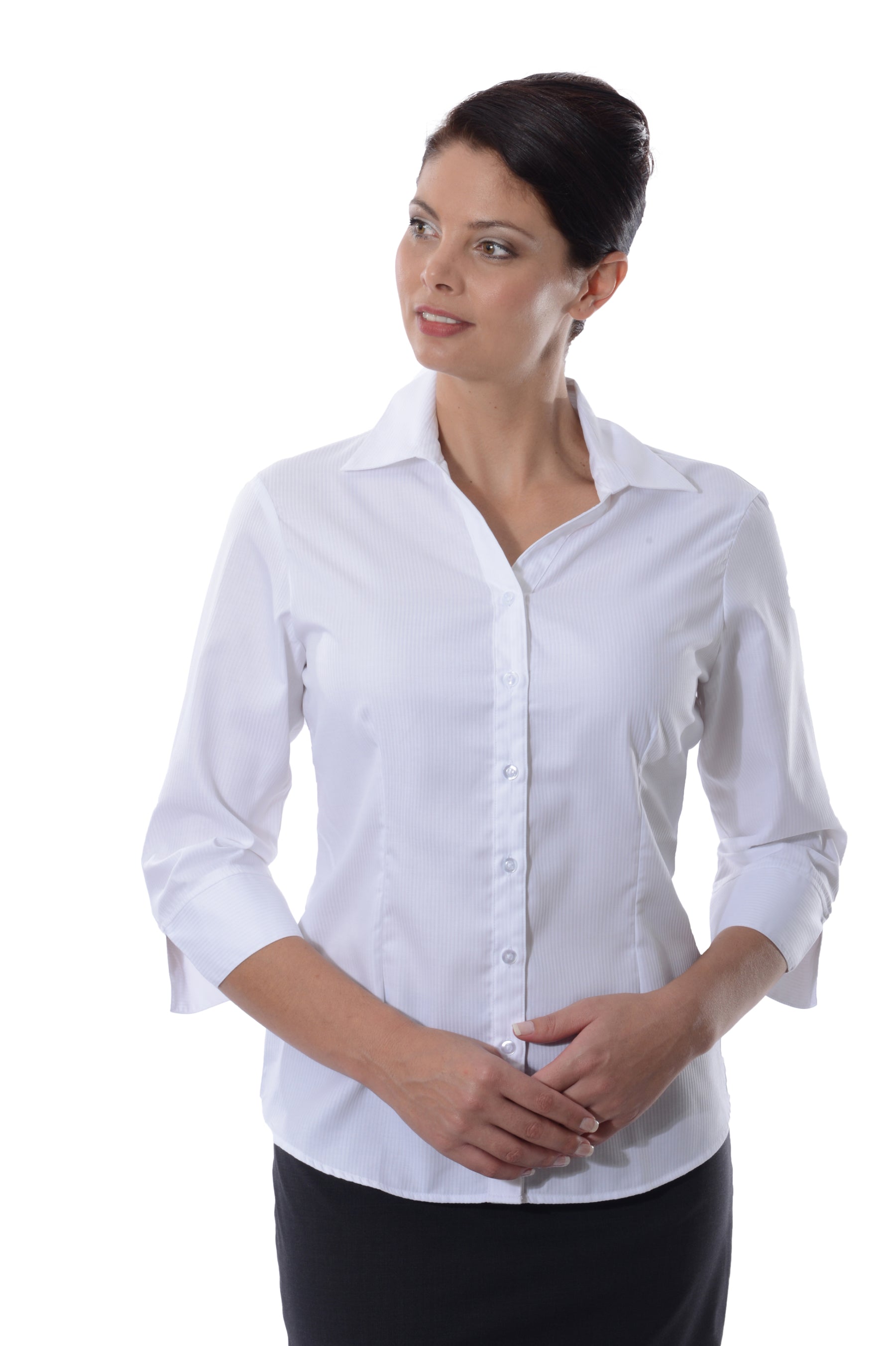 This women's semi fitted button front blouse is a staple piece for your office wear wardrobe. The front and back shaping creates a nice silhouette and can be worn over trousers or tucked in.